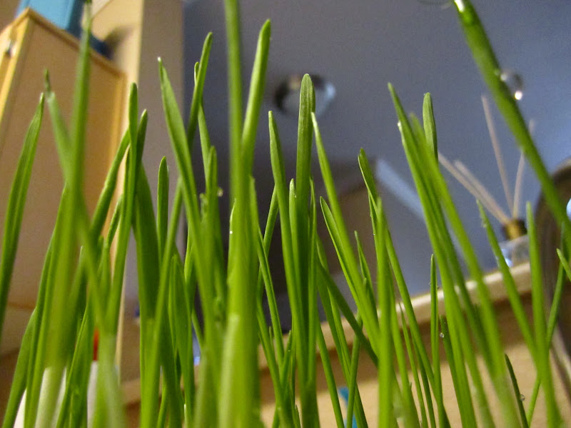 This is an update on my kitty grass along with our new pretty flower garden out on our balcony! Ben found a cool hanging planter for the railing! I love it.